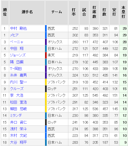 ちなみに現在パリーグのホームランは