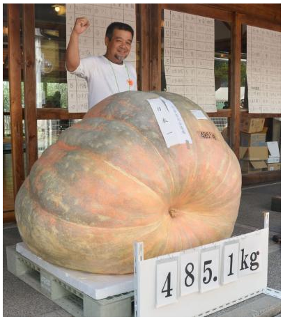 千葉県鴨川市の会社員上野貢司さん(52)が重さ485・1キロのカボチャで、2年連続優勝を果たした。